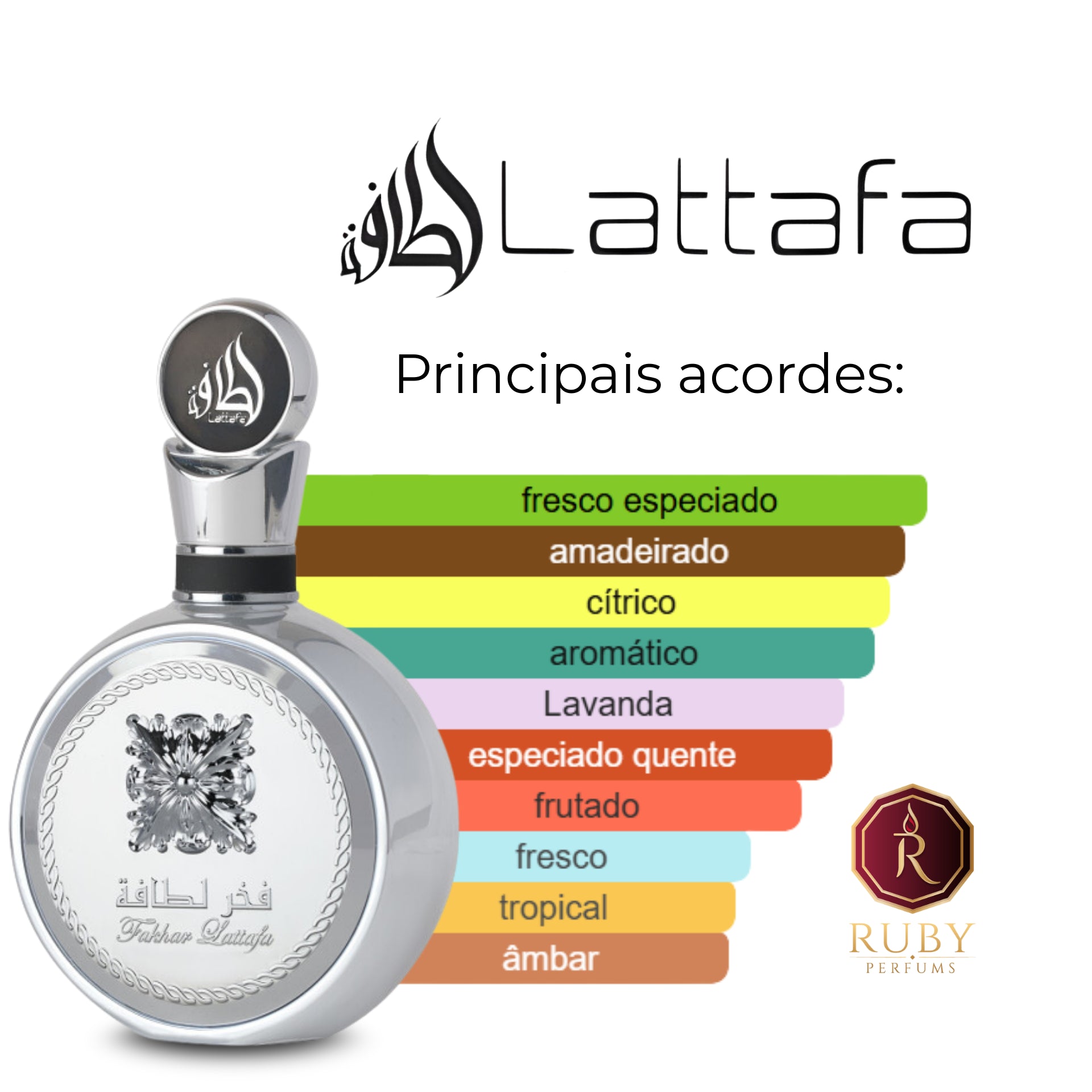 Fakhar Platin de Lattafa Perfumes é um perfume Aromático Fougére Compartilhável. Esta é uma nova fragrância. Fakhar Platin foi lançada em 2025. As notas de topo são: Bergamota, Pimenta Rosa e Cardamomo. As notas de coração são: Goiaba, Lavanda e Gengibre. As notas de fundo são: Incenso, Palo Santo e Sândalo.